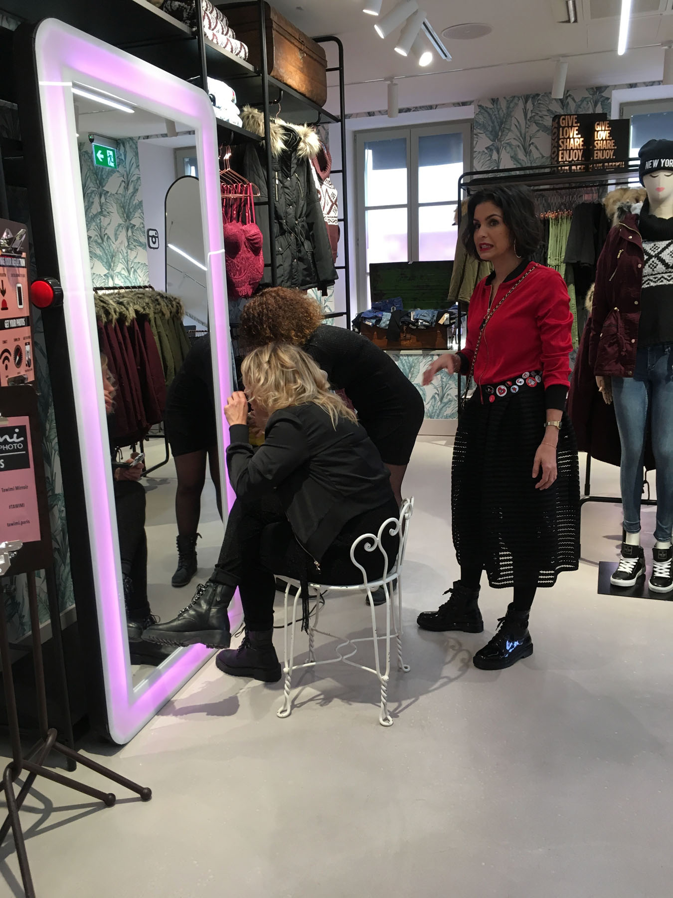 Miroir photo Tawimi (grand modèle) Miroir photo Tawimi (petit modèle) Quelques lieux dans Paris où vous pouvez trouver Tawimi : L'Arc Paris, Le Matignon, Hôtel Le Melia, Le Fouquet's, salles de sport Fitness Park et également clubs, discothèques, hôtels, restaurants, salons de coiffure / cosmétique, agences de mannequins... Borne photo miroir (boutique de vêtements) Miroir / borne photo / photobooth (hôtel) Miroir / borne photo / photobooth (salle de sport)